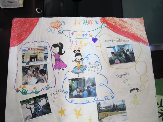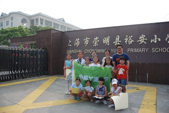 (環境教育の一つ。裕安小学校生の作成「グリーンマップ」づくり。日本が指導した教材が教育委員会に評価され、崇明島全小学校に普及している)