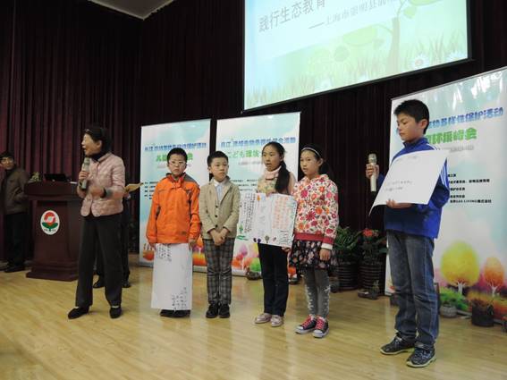 日中代表校の活動発表では、中国側が崇明県の三つの代表校(裕安小学校、前哨学校、陳家鎮小学校)の児童代表がそれぞれ「グリーンマップ行動」、「リトル東灘の自然ノートメモ活動」、「カササギ資源科学普及等の活動」について発表。長江流域(江蘇省、安徽省、四川省)からの代表校もそれぞれ学校の概況や環境保全活動についての取組みを発表した。
