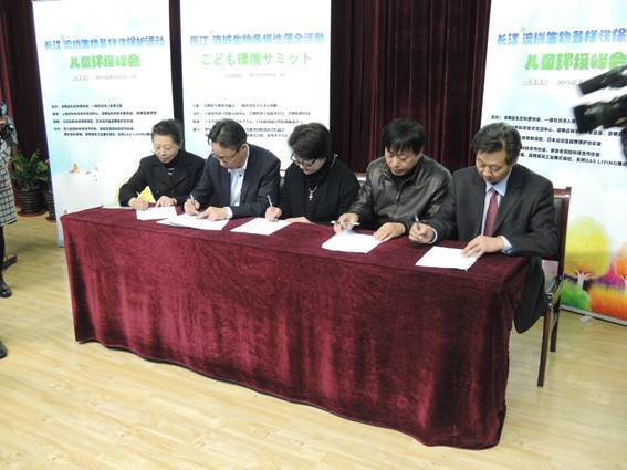 「長江流域生物多様性保全活動---こども環境サミット」を通して、生物多様性環境保全分野の交流推進と持続可能な発展を目指し、一般社団法人ときの羽根と上海対外科学技術交流中心、崇明県生態科学技術普及協会、安徽省国際科学技術合作協会、四川省国際科学技術合作協会の5者で協力していくことに合意し調印した。