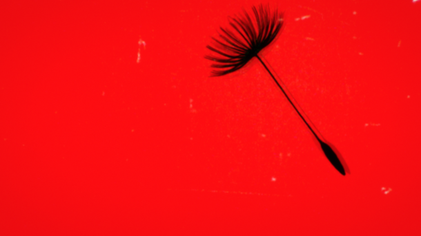 1枚目カット2 どうすれば4面連動が伝わりやすいかを考え、街との対比も考慮してシンプルな赤い色面のグラデーションから物語が始まります。