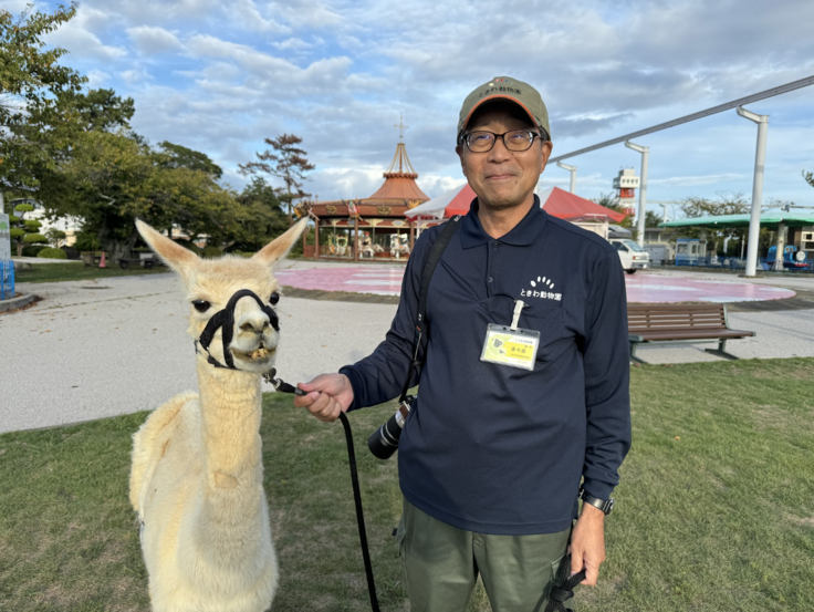 中でも開園当初からいるアルパカのタックは、白い毛並みと出っ歯がトレードマークのときわ動物園の人気者です。
