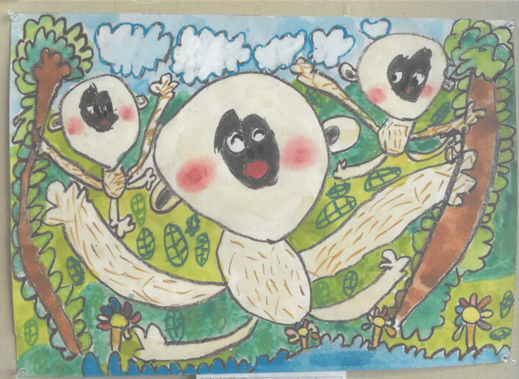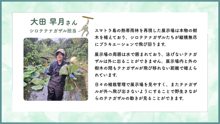 「アジアの森林ゾーン」木々を飛び交うシロテナガザル