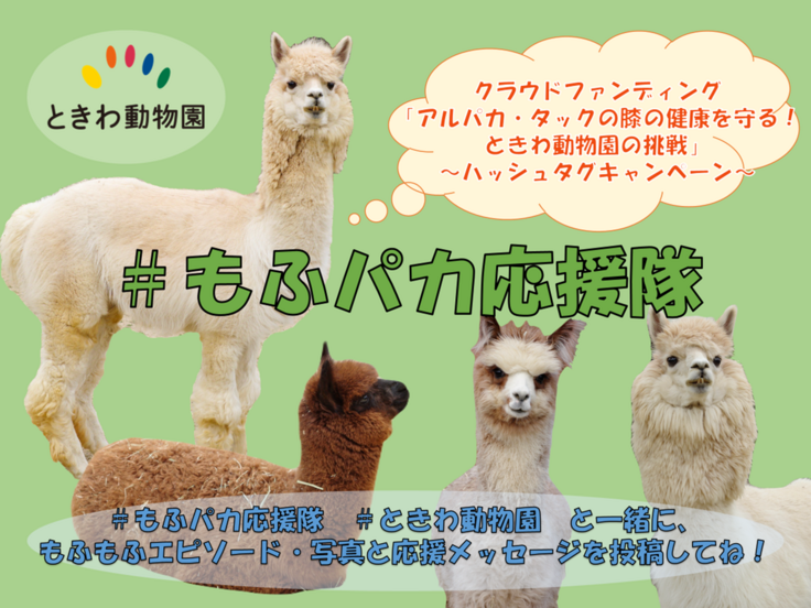 「#もふパカ応援隊」と「#ときわ動物園」を添えて、あなたの「アルパカ愛」や「もふもふエピソード」、「応援の声」を聞かせてください。