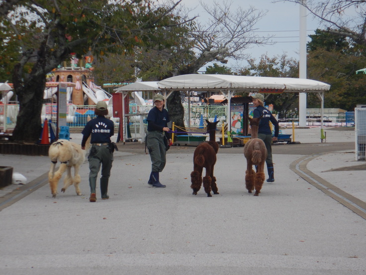 休園日にしかできないタックとアルパカ飼育員の楽しみは、アルパカ3頭での曳き運動です!