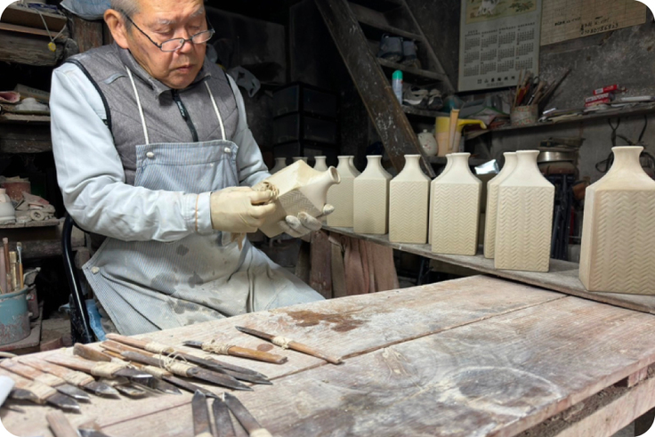 しかし、職人の方々の、魂のこもったものづくりをそばでずっと見てきた人間として、産地の衰退をこのままただ見ているだけでいいのだろうか?なにか自分にできることをやらなければならない!と思うようになり、陶器ボトルの企画・販売商社として起業することを決め、今に至ります。