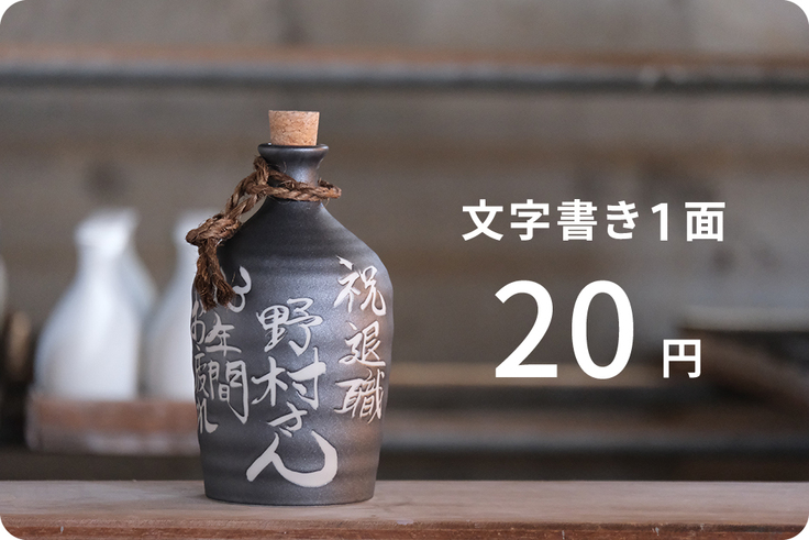 文字書きの価格は1面で20円、陶器ボトルとしての工場出し価格は1つ”300円”です。(2024年現在)