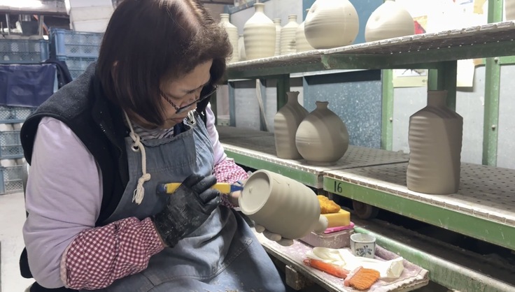 先日のグラスに続き、返礼品「陶器ボトル」の製作も始まっています!