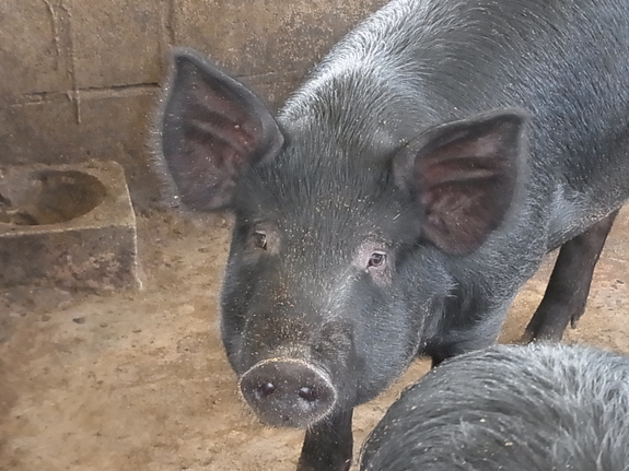 何を食べているのか、分からない豚たち。『見える安心・安全の食材』を追求し、抗生物質などは与えず、広々した環境で飼育します。
