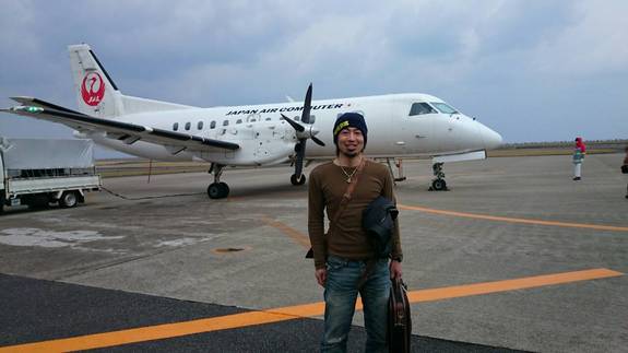 (徳之島空港にて。メンバーの一人の正剛君です。奄美黒豚プロジェクトを進めるため、年内に大阪から徳之島へ移住予定です。)