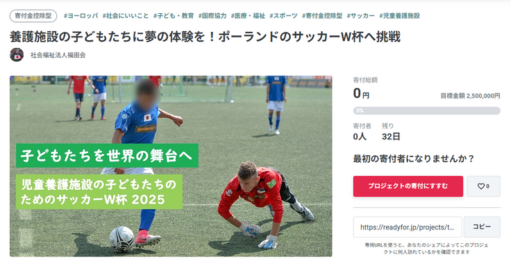 以前は「養護施設の子どもたちをポーランドのサッカーワールドカップへ!」プロジェクトにたくさんのご支援をいただきまして誠にありがとうございました。