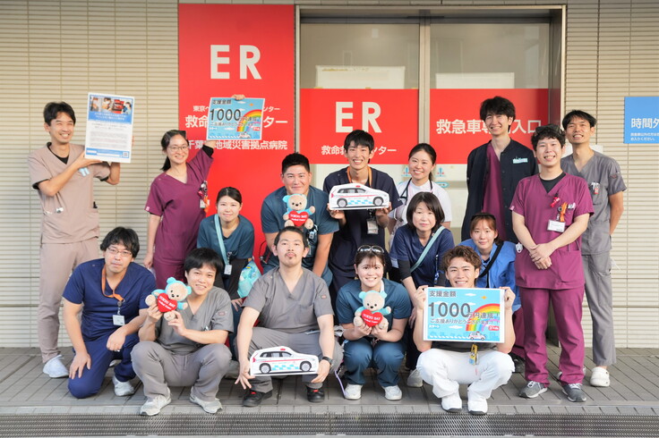 そして1,000万円の達成写真は救急外来メンバーです、プロジェクトリーダーの舩越先生も入って喜びの1枚を撮りました!