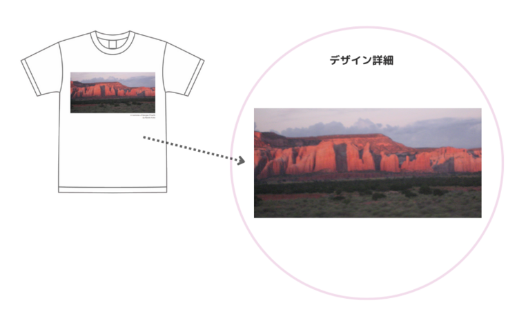 ※ベースとなるTシャツ写真はサンプル画像を用いているため、実際のTシャツとは形が多少異なる場合があります。