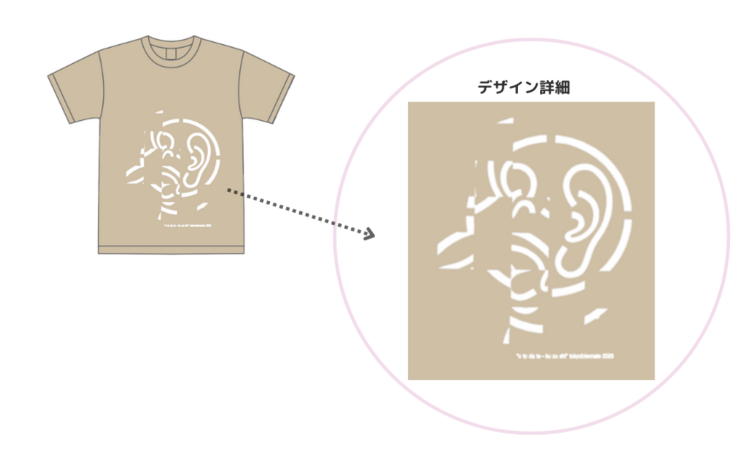 東京ビエンナーレでは連続して《その後の「そこで生えている。」》という木炭画を伸長させ続けており、これを書いている時点で330メートルほどになっています。最近になってそこから陶像が生まれさらにはアクリル画や油彩画へと連鎖しています。「まだ見ぬ景色へ」から「つながりをつくる」を経て「いっしょに散歩しませんか?」に至る東京ビエンナーレのテーマですがよろしければこのTシャツを着て歩いてみてください。