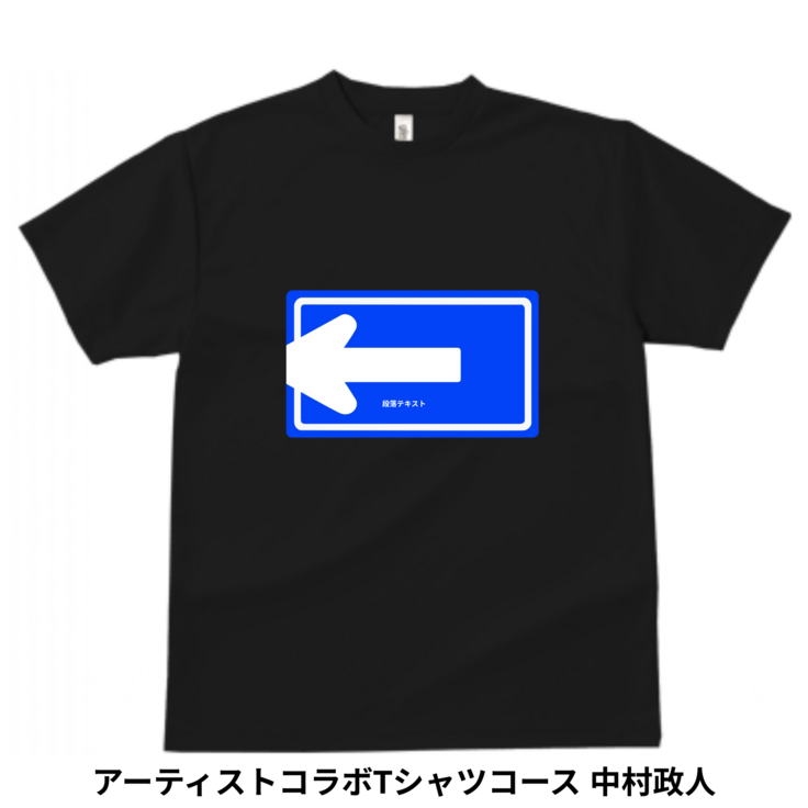 実物の標識を少し変えたデザインの作品を、今回はTシャツで展開します。
