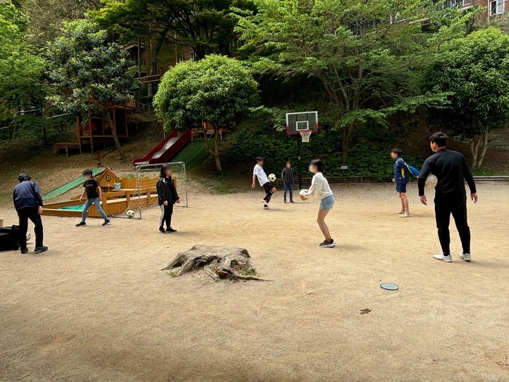 初回の練習ということもあり、まずはペアになってボールのパス練習や、2チームに分かれて簡単なゲームなどを行いました。