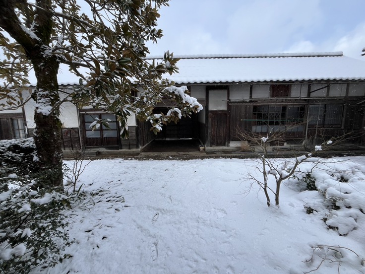 右が今回改修する長屋、左が子ども秘密基地予定の長屋。(撮影2月4日PM12:00)