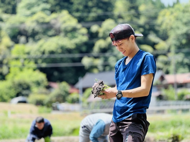 凛太郎さんは手植えの田植えをやっていたこともあり、西田ファミリーの田植えでは頼もしい姿を発揮。