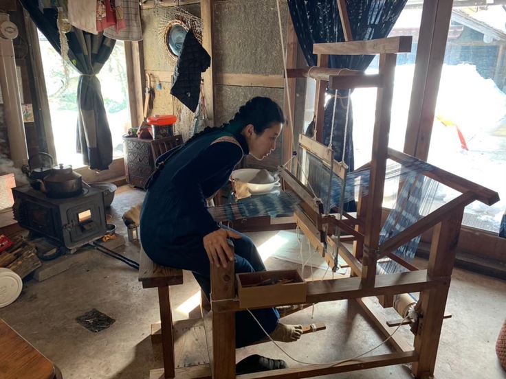 彼女の草木染はまず火を起こすところから始まります。