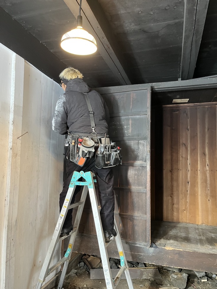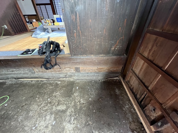 トイレ周り、土間からの板羽の計測や下駄箱の位置などの確認を行いました。