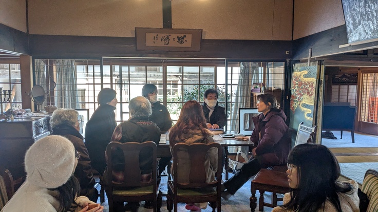 今回田原先生の話を伺ったのは、とまりぎメンバー代表、副代表、当主を含む7名と島根から一級設計士事務所宇田川孝治建築設計事務所の宇田川さんと奥様の合計9名でした。