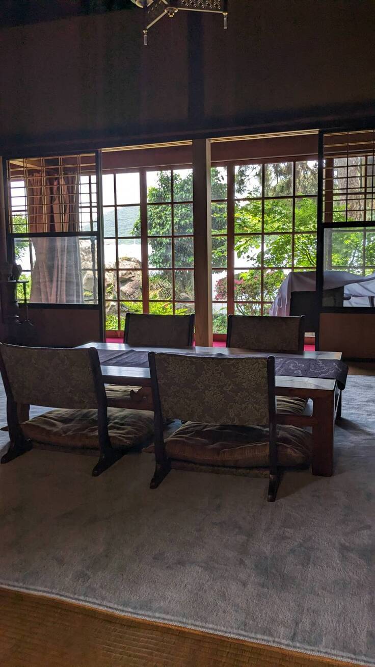 (たくさんのガラス窓はお掃除こそ大変ですが石庭がよく見えてお部屋と調和し、とても美しいのです)