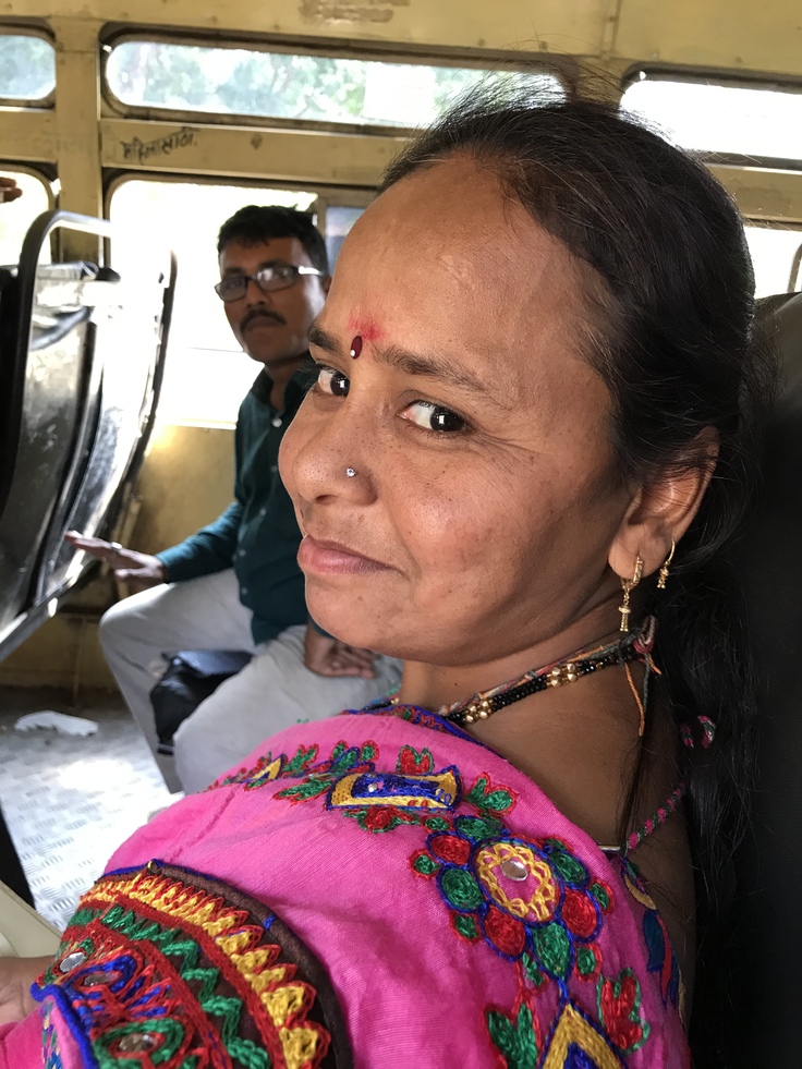 (2度目のインドで。バスで隣になったご家族と。何歳?と聞かれていたがその時は分からず"どの位滞在するの"ときかれていると勘違いし、11才と言って笑いを貰っていた。ちなみにフルーツももらった。)