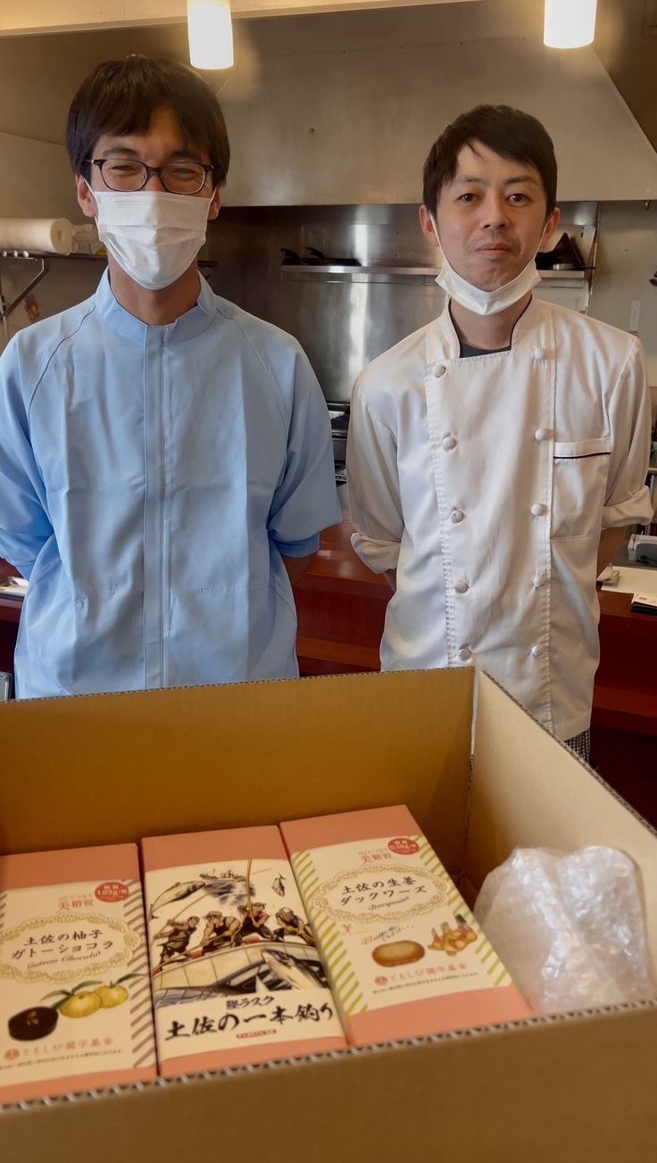 ともしび奨学金の原資は低糖質スイーツの売上の5%なのですが、今回のクラウドファンディングのプロジェクトをテレビ局さんの取材していただくために、低糖質スイーツをテレビ局にお持ちしようと思いました。協力企業であるストロベリーフィールズさんに低糖質スイーツをご提供いただきました。代表の野田光一さん、大川さん、伊藤工場長、ありがとうございました!!