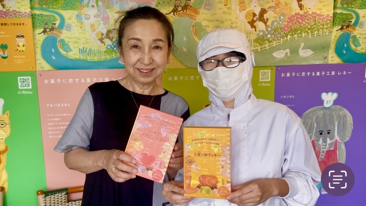 全国で人気の絵本作家・柴田ケイコさんのイラストのパッケージや壁一面のイラストがとてもかわいいお店ですよ!ぜひ、行かれてみてください。