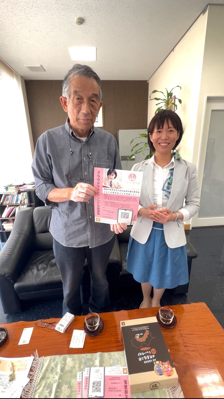 プロジェクトのご協力に株式会社山崎技研・山崎道生会長をご訪問しました。先日は従業員の方にご挨拶、プロジェクトの説明をさせていただきましたが、本日は会長の山崎道生(みちお)さんにお会いすることができました。チラシ配布などの配布のご協力を改めてしてまいりました。