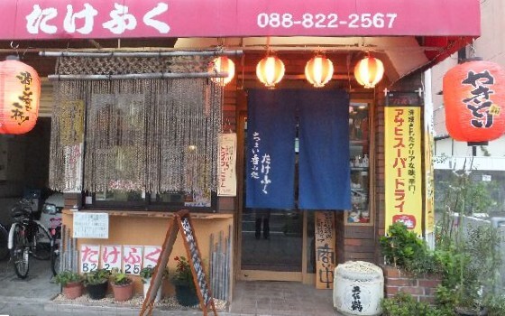 高知市の居酒屋・ちょい呑み処たけふくに期間中、ポスター掲示のご協力をいただいておりました。ソフィアンで高知大学名誉教授の藤本富市先生が行きつけのお店で、電車通りグランド駅前にあります。道の北側です。