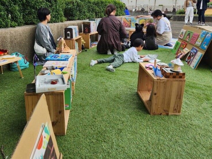 まちなかウォーカブル社会実験「OPEN STREET+」イベント参加風景(おそとで図書館)
