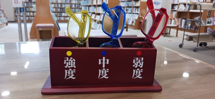 まずは「老眼鏡」。弱・中・強の3段階の度数をご用意していて、細かい文字が読みづらい方に大好評!