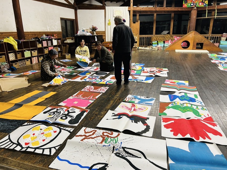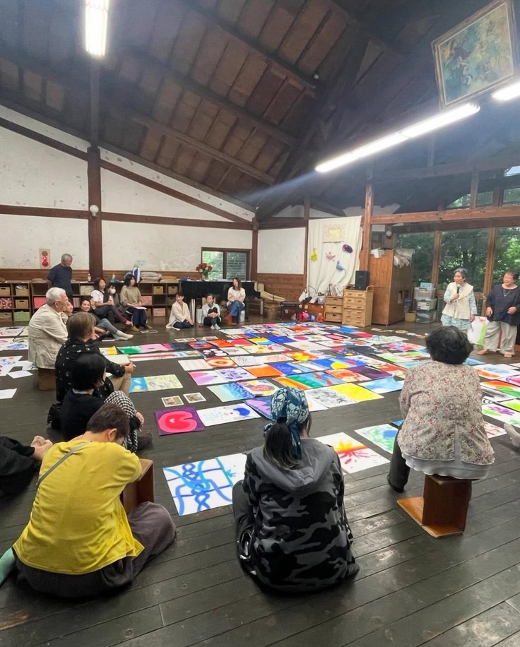 子どもたちの心を開放する歌やリズム遊びに触れたり、子どもたちが日常の生活や保育の中で表現した絵を囲み大人たちが真剣に子どもの心に向き合いながら学びを深めていきます。