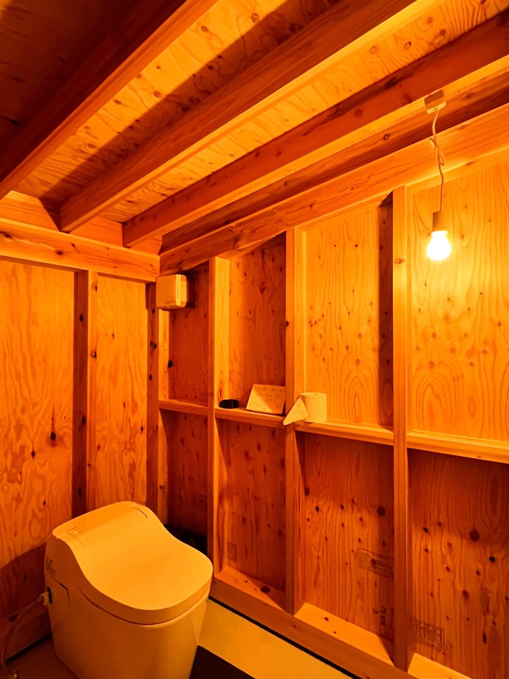 無事に目標金額に達成することができまして、無事にバリアフリートイレが完成いたしました。雪の時期には、露天風呂のような雰囲気で木の温もりを感じられる可愛いトイレとなりました。