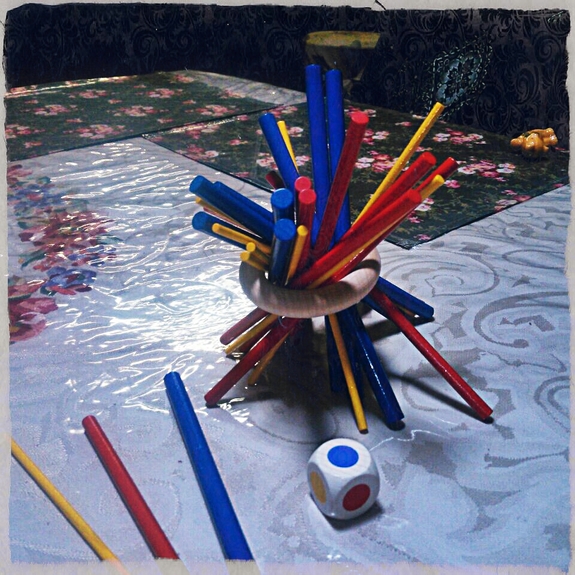 サイコロの出た目の色と同じ色の棒を抜かないと・・・