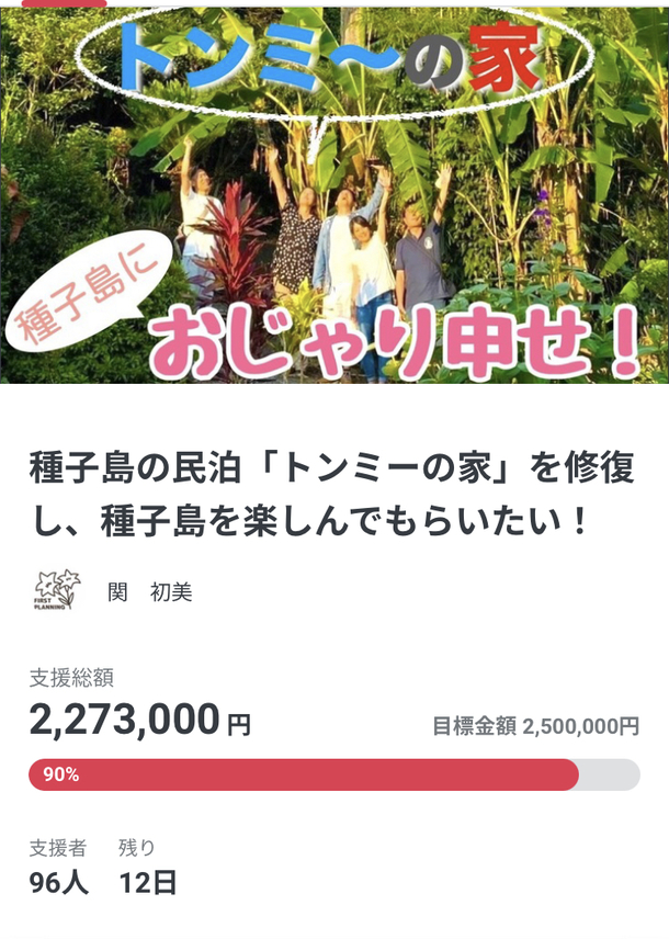 種子島の民泊「トンミーの家」を修復し、種子島を楽しんでもらいたい!