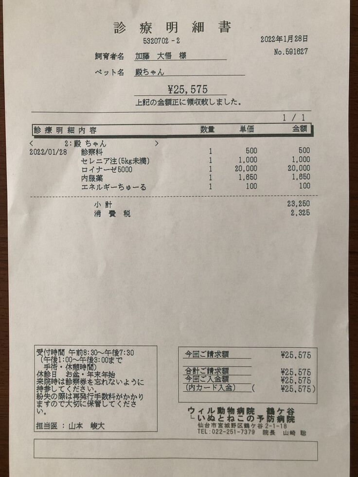 これまで40万円(手元に届くご支援金額:約35万円)を目標額としてきましたが、殿の治療を進めていくと、当初、想定していなかった事が多々あり、総額の治療費が2.5倍から3倍近くになってしまう事がわかりました。