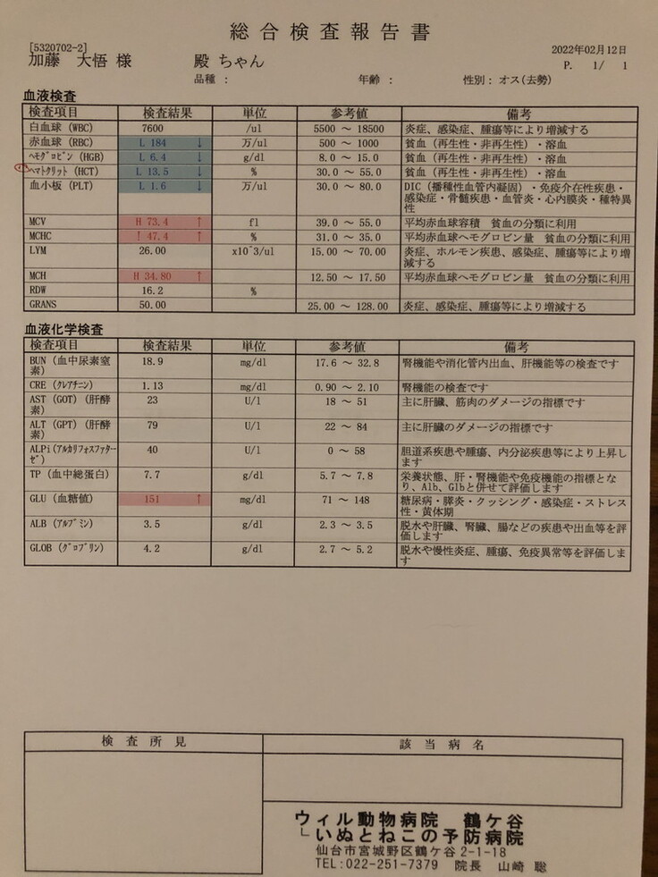 貧血の症状もある為、状態をみて輸血する事もあります。
