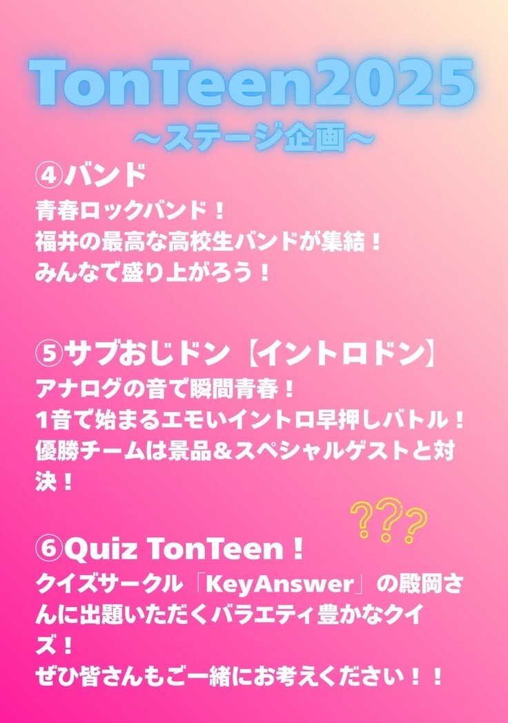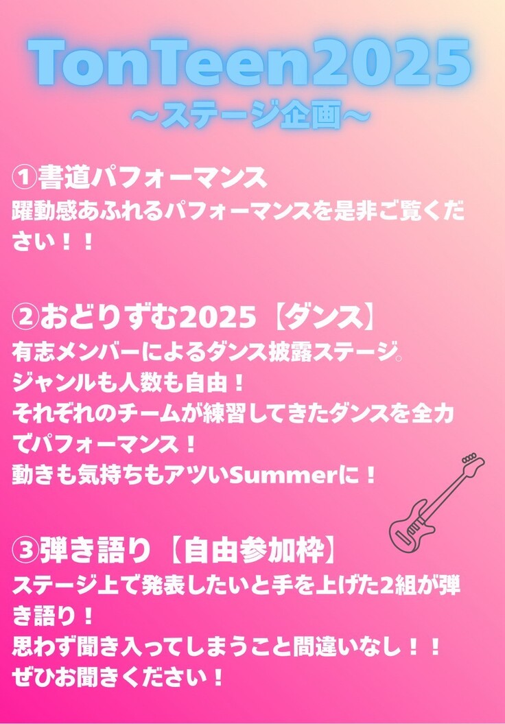 当日は演者も見ている人も楽しめるTonTeenになること間違いなしです!