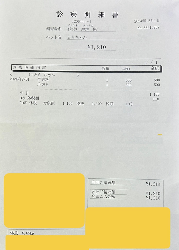 再診療と爪切り代です。