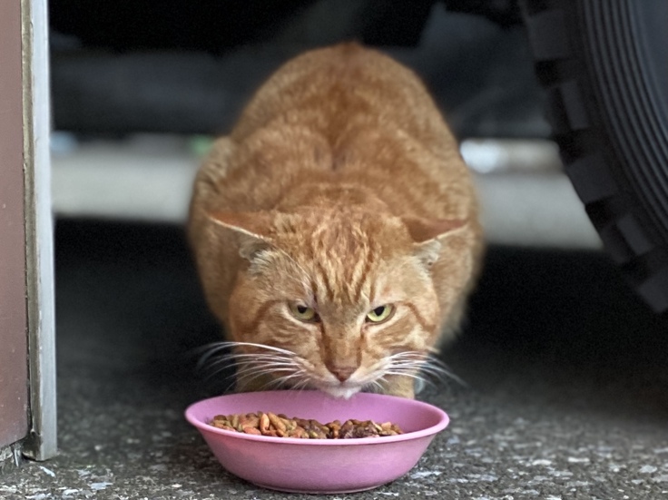 去勢手術前、ゴハンをあげに行くと必ずシャー!!っと威嚇をしていたトラちゃん。