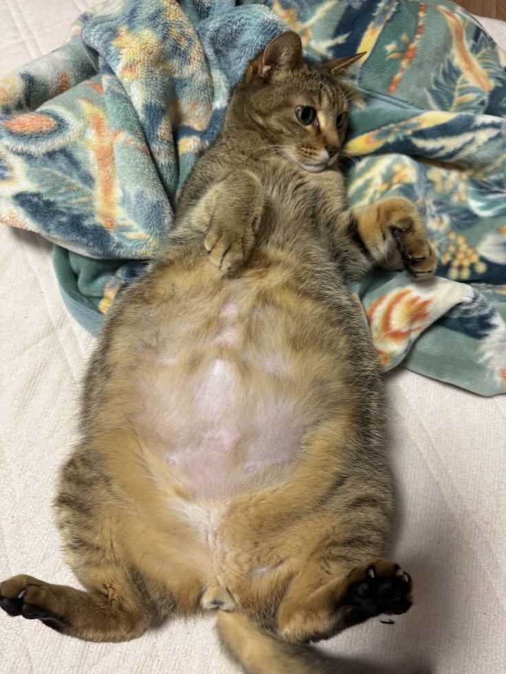 ですが2024年11月に、お腹がぷっくりしてるのに気がつき、病院連れていったところ腹水との事で、腹水が出る時点でかなり危ない状態との説明がありました。(腹水が出る時点で確実になんらかの重い病気だそうです)