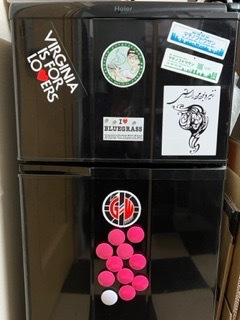 百均とかでも売っているマグネットシートにシールを貼って気分次第で色んなところに貼り替えられるというものです。