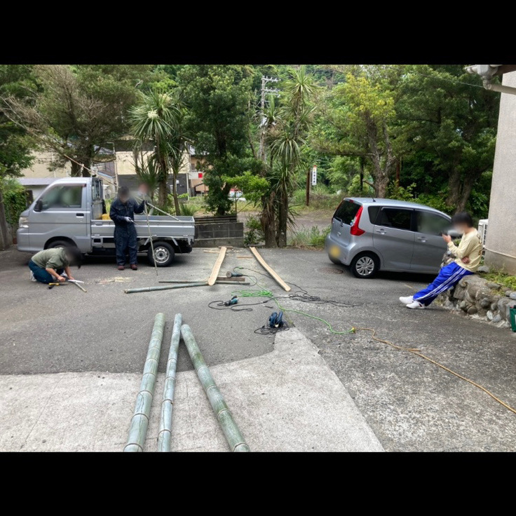 そんなかんだで竹取も終わり次は、いろり坊さんの敷地を借りて竹の加工作業です。