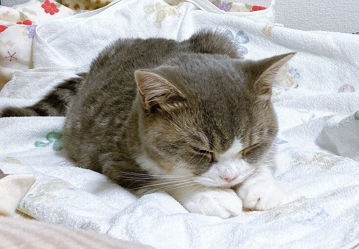 朝ごはんは食べられたものの、昼頃からまた食欲がなくなり、脚に力が入らないのか後ろ脚が滑っているように見えました。夜にはまた発熱してしまった様子で、顔が険しくなり、かなりしんどそうでした。。かかりつけの病院が水曜お休みのため、次の日朝イチで再度病院に連れて行くことに。