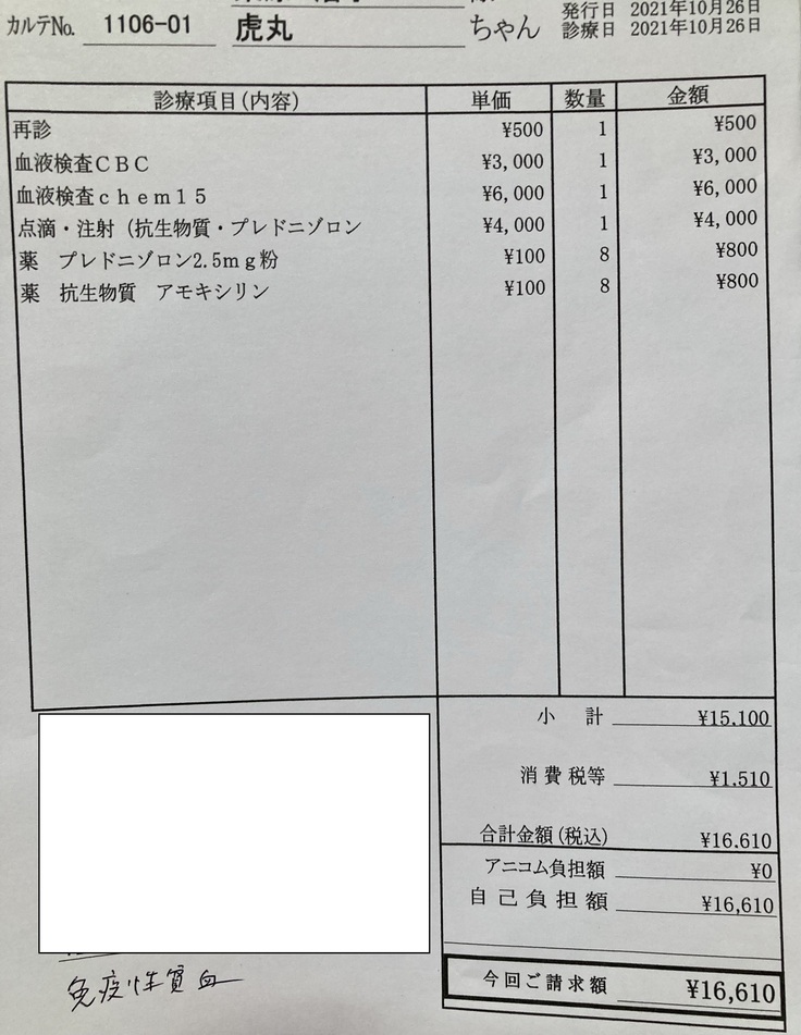 動物病院の診療明細書が母名義で出ているため、実行者は母名義としておりますが、