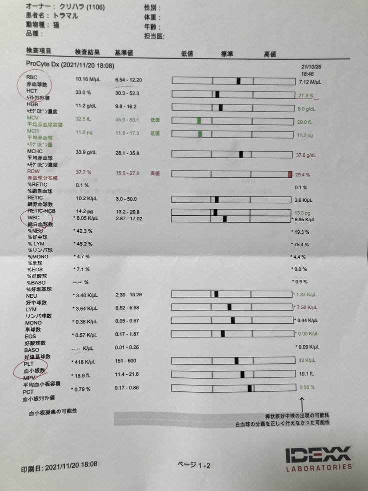 (一部「高値」となっている項目は貧血の状態から一生懸命赤血球を作っているためのようです)
