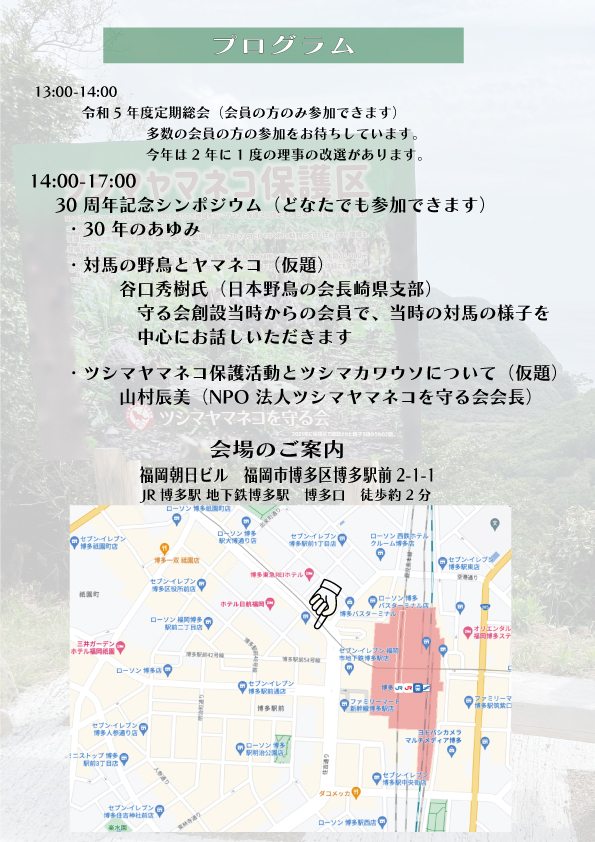 ・ツシマヤマネコを守る会ホームページにお名前掲載(希望制)