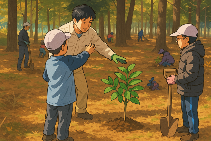 観察教材づくりと植林活動を組み合わせ、地域の自然と命の循環を取り戻します。