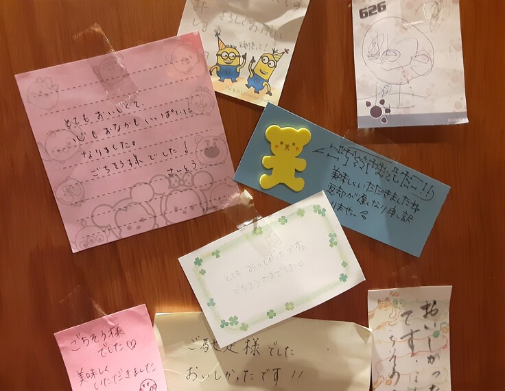 返却されたお重の中には、お菓子や温かいメッセージが入っていることもあります。お客様が風呂敷をほどき、お重の蓋を開ける瞬間の笑顔をイメージして、心と身体が満たされる料理をお届けしたいと思います。